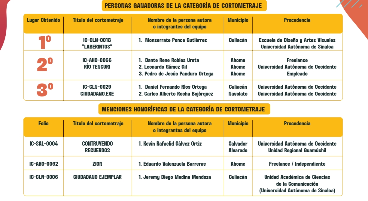 A la premiación del concurso, asistieron las personas ganadoras, y sus familiares, así como autoridades del IEES, autoridades educativas de la Universidad Autónoma de Occidente, de la Universidad Autónoma de Sinaloa, de la Unidad Académica de Ciencias de la Comunicación y Escuela de Diseño y Arte.